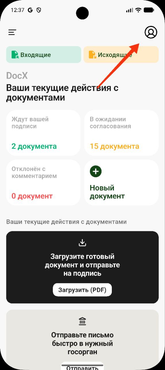Откройте приложение DOCX и войдите в систему с почтой и паролем, которые вы указывали при регистрации.