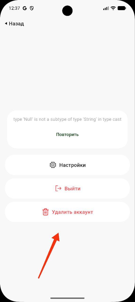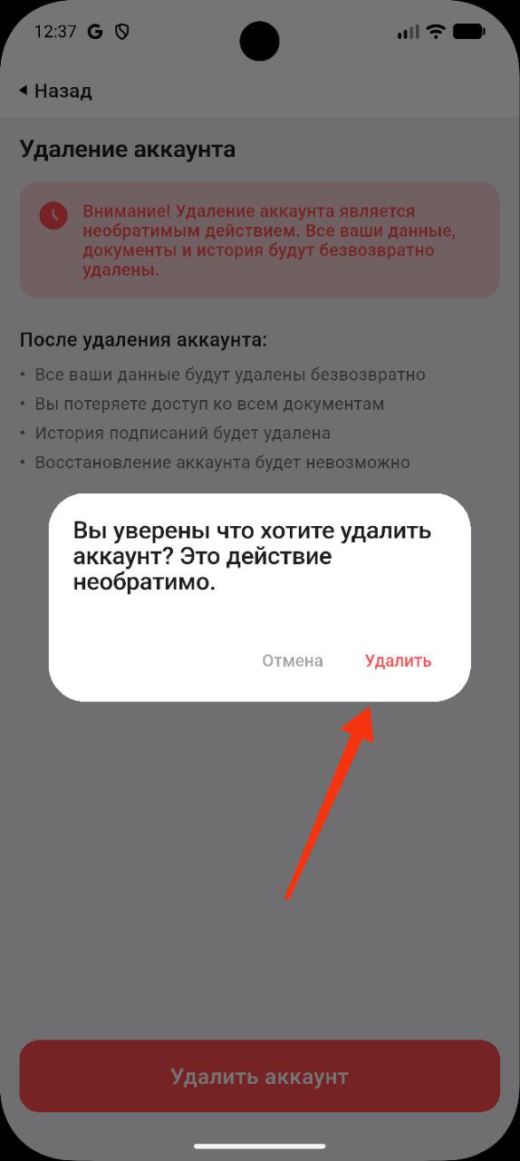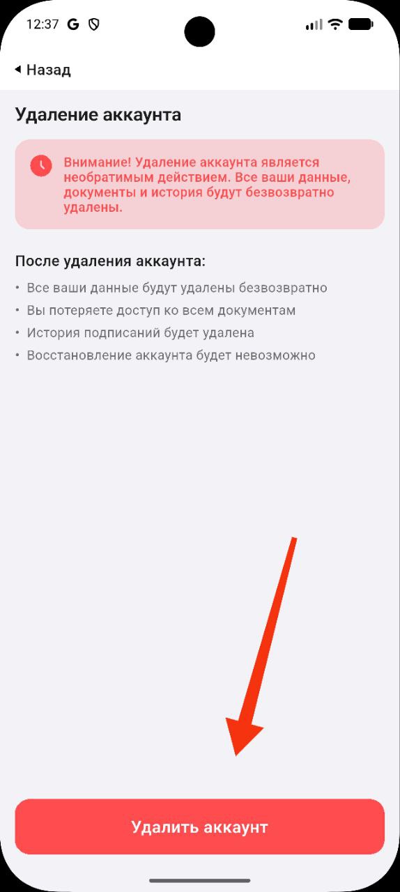 - Удаление аккаунта является необратимым действием